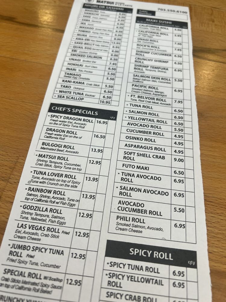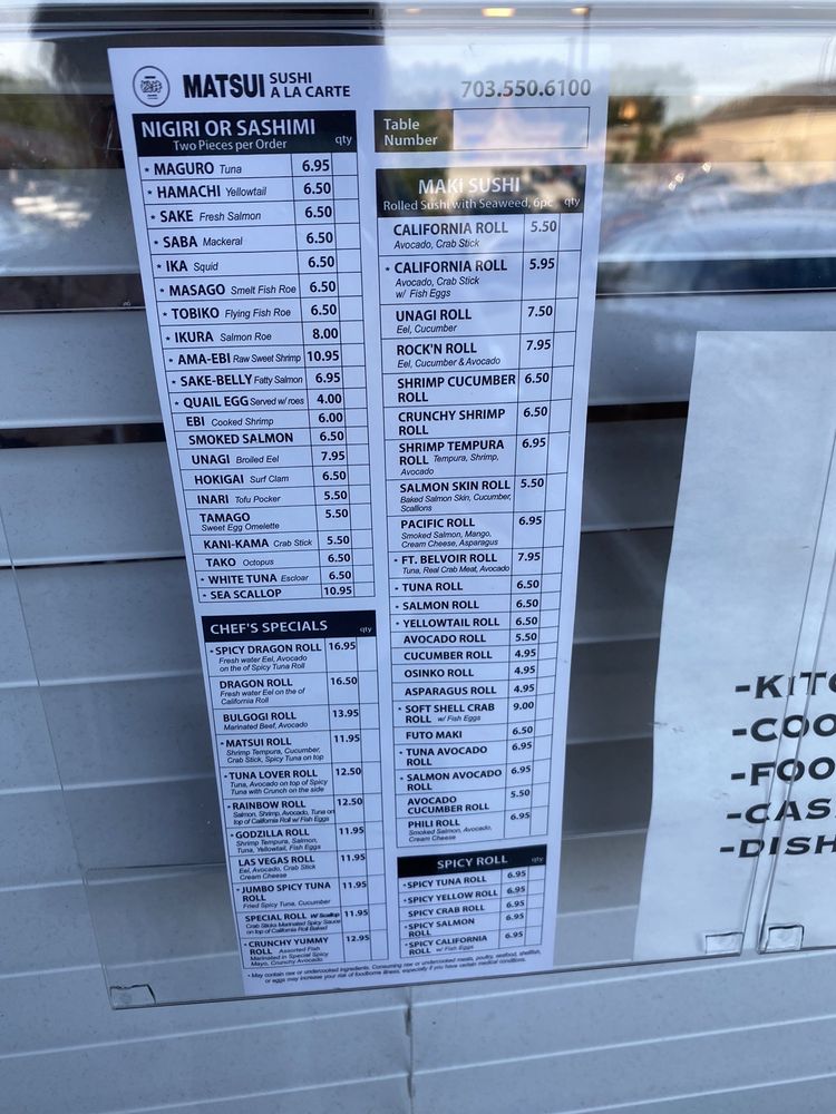 Welcome to Matsui Sushi & Ramen, a hidden gem in Alexandria, VA, known for its top-notch sushi and flavorful ramen dishes. Customers rave about the delectable ramen options, with the volcano ramen standing out for its intense spiciness. The sushi is always fresh, with standout items like the salmon belly and assorted nigiri. The atmosphere is welcoming and cozy, with attentive service and a bustling dinner rush. Parking is convenient, and the restaurant offers takeout for those who prefer dining at home. Whether you're a sushi aficionado or a ramen enthusiast, Matsui Sushi & Ramen is a must-visit for a delightful Japanese dining experience.